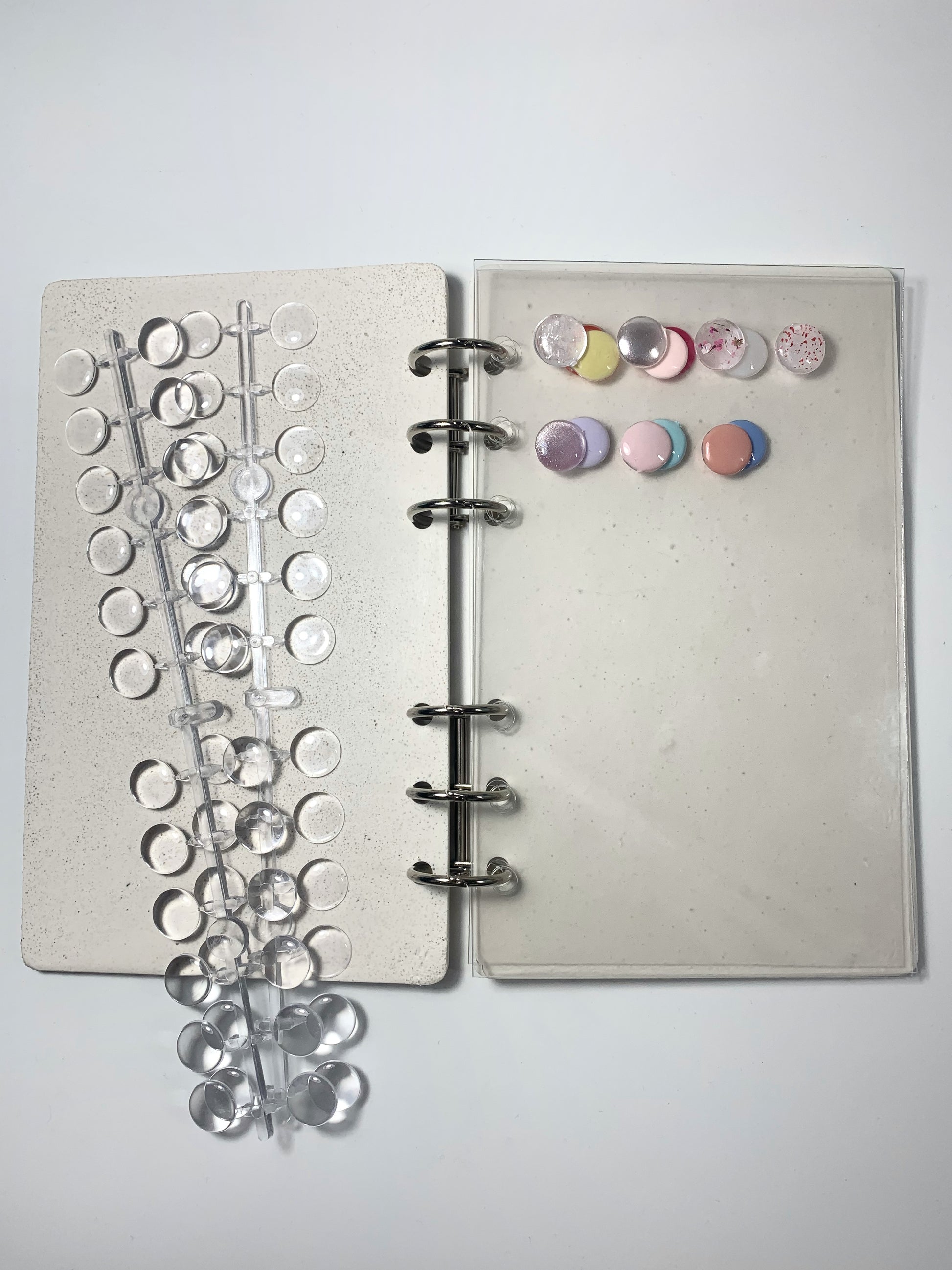 Organise et expose tes plus belles créations avec ce carnet nuancier spécialement conçu pour les nail artists. Chaque page te permet de coller facilement tes pastilles transparentes incluses. Parfait pour présenter tes designs à tes clientes ou pour garder une trace de ton évolution artistique.