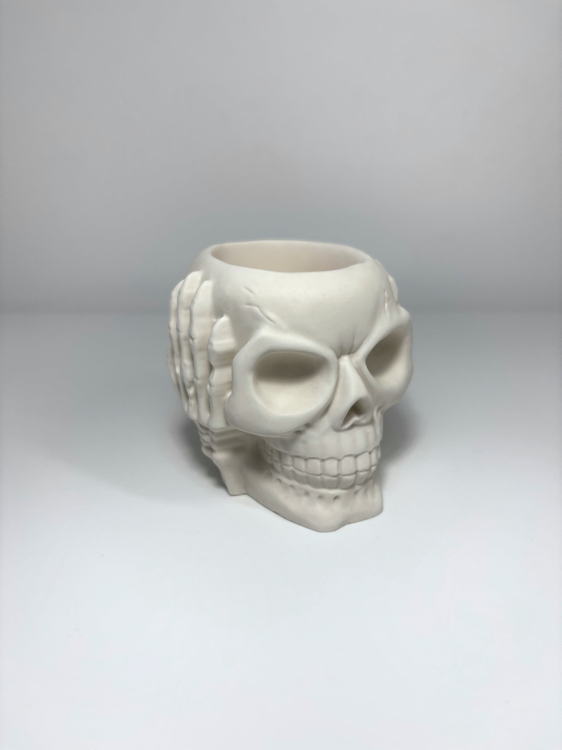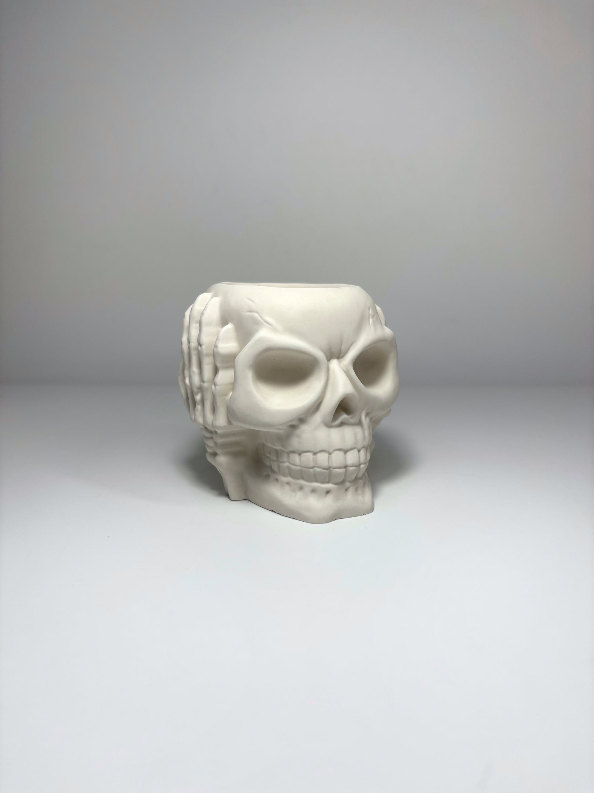 Apportez une touche originale et audacieuse à votre intérieur avec ce pot en forme de crâne. Conçu en Jesmonite, un matériau à la fois robuste, léger et écologique, il allie design moderne et esprit mystique.