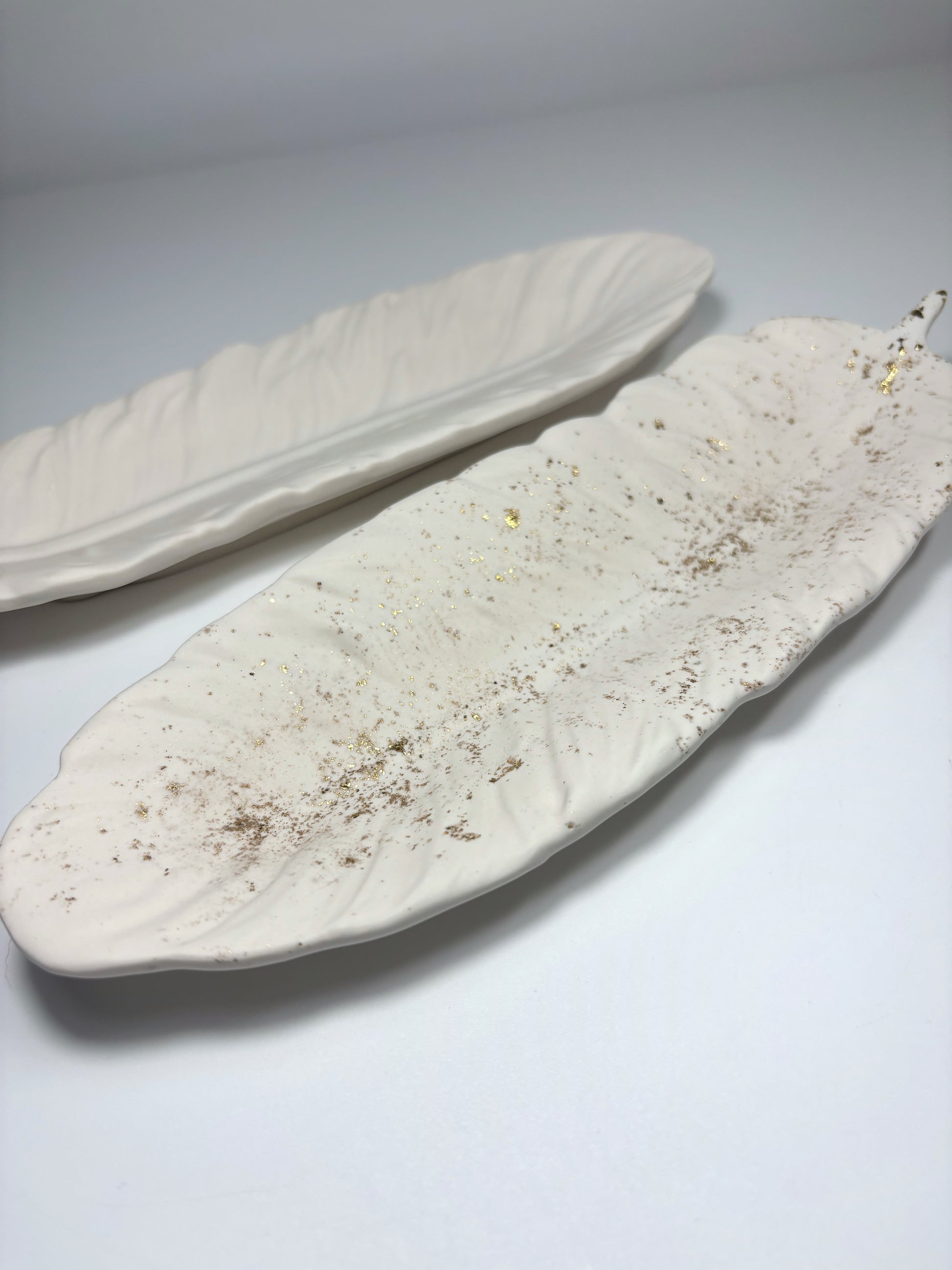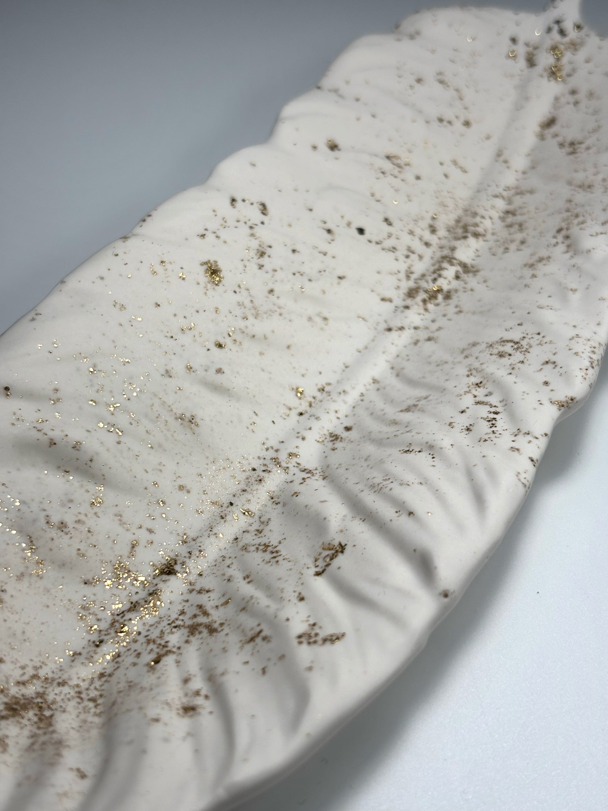 Apportez une touche douce et naturelle à votre espace de travail avec ce plateau en forme de plume , entièrement réalisé à la main en Jesmonite.